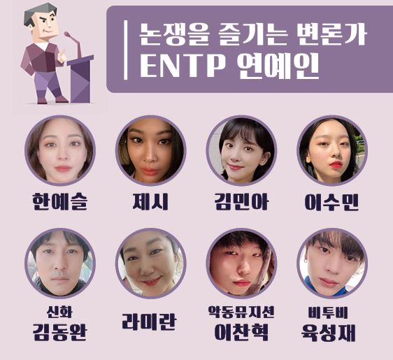 - ENTP 논쟁을 즐기는 변론가 유형 연예인